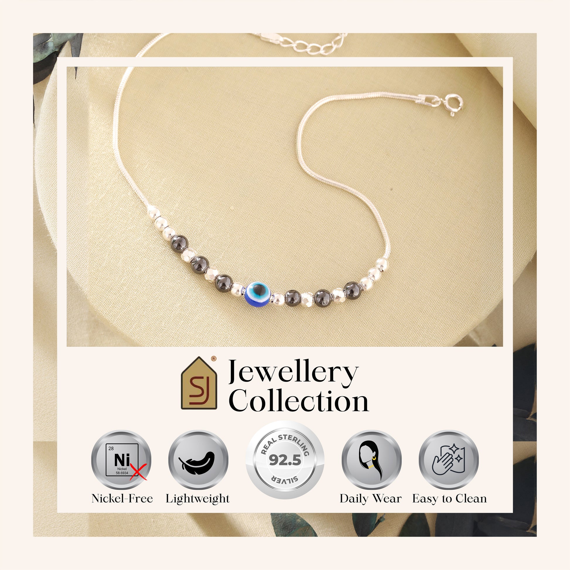 Radiate strength, beauty and balance with every step you take in this 925 Silver Evil Eye Anklet made with pure silver. Lightweight and beautifully detailed, this is the perfect item for personal use or a meaningful gift.