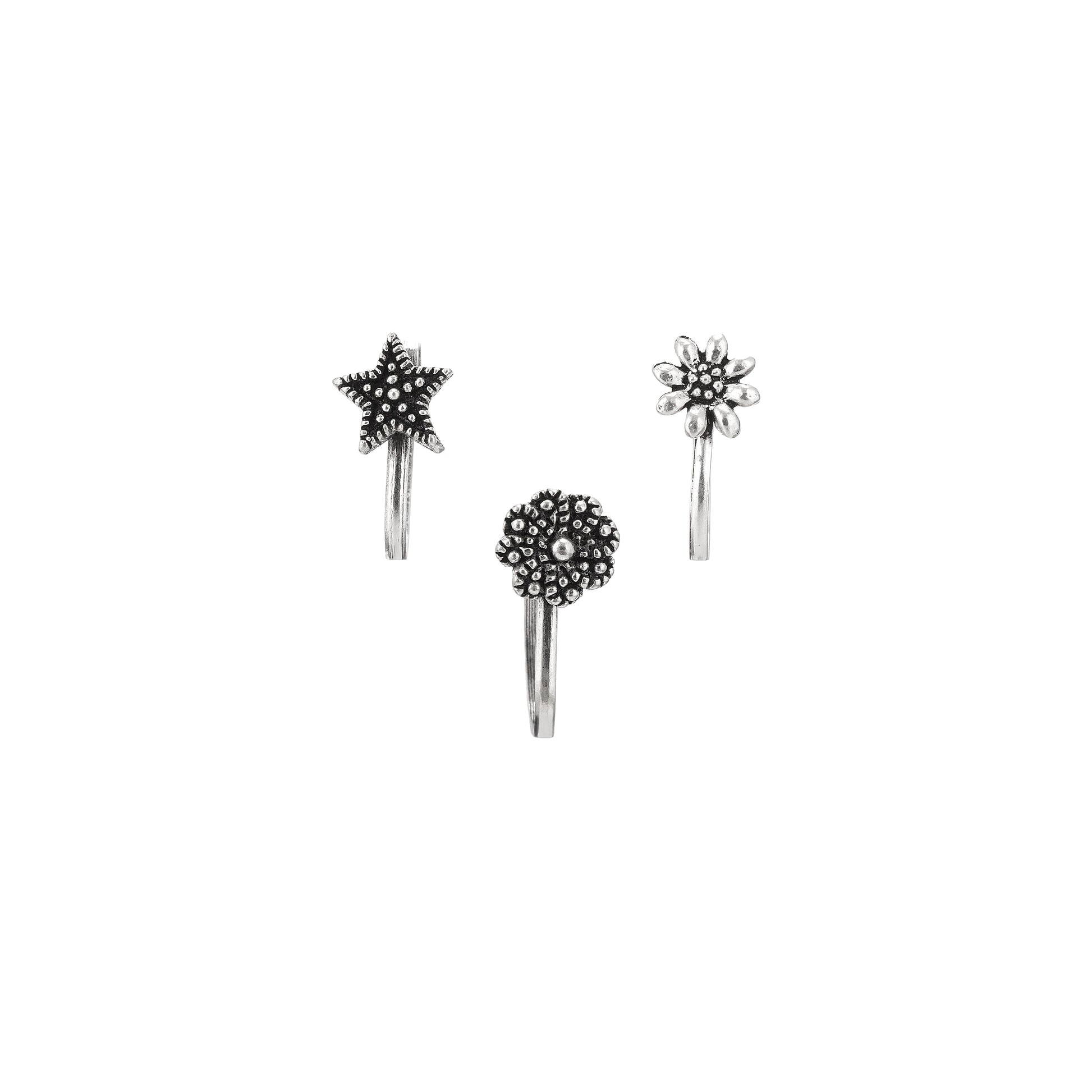 Add instant charm to your look with this elegant set of 3 sterling silver nose clips. Designed for women who prefer piercing-free style, the lightweight and adjustable design, it's a stunning traditional yet modern piece. It's easy-to-wear design makes it perfect for daily wear or festive occasions.