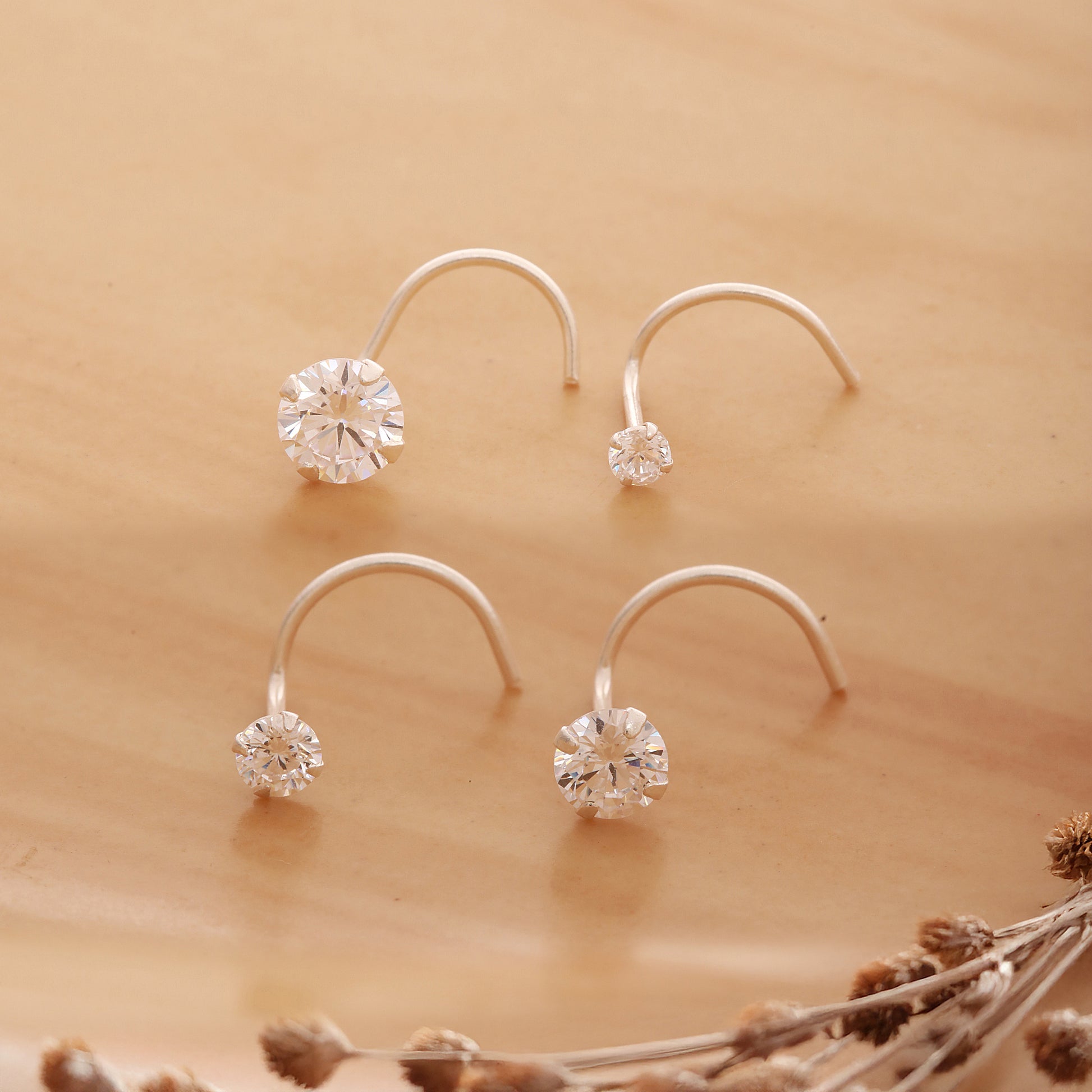 A perfect blend of subtle charm and radiant shine, this set of 4 sterling silver CZ nosepins is designed for women who love effortless elegance. Lightweight and comfortable with an easy-to-wear wire, these minimalist nosepins come in various sizes, which makes them elegant for daily wear and versatile enough for special occasions.