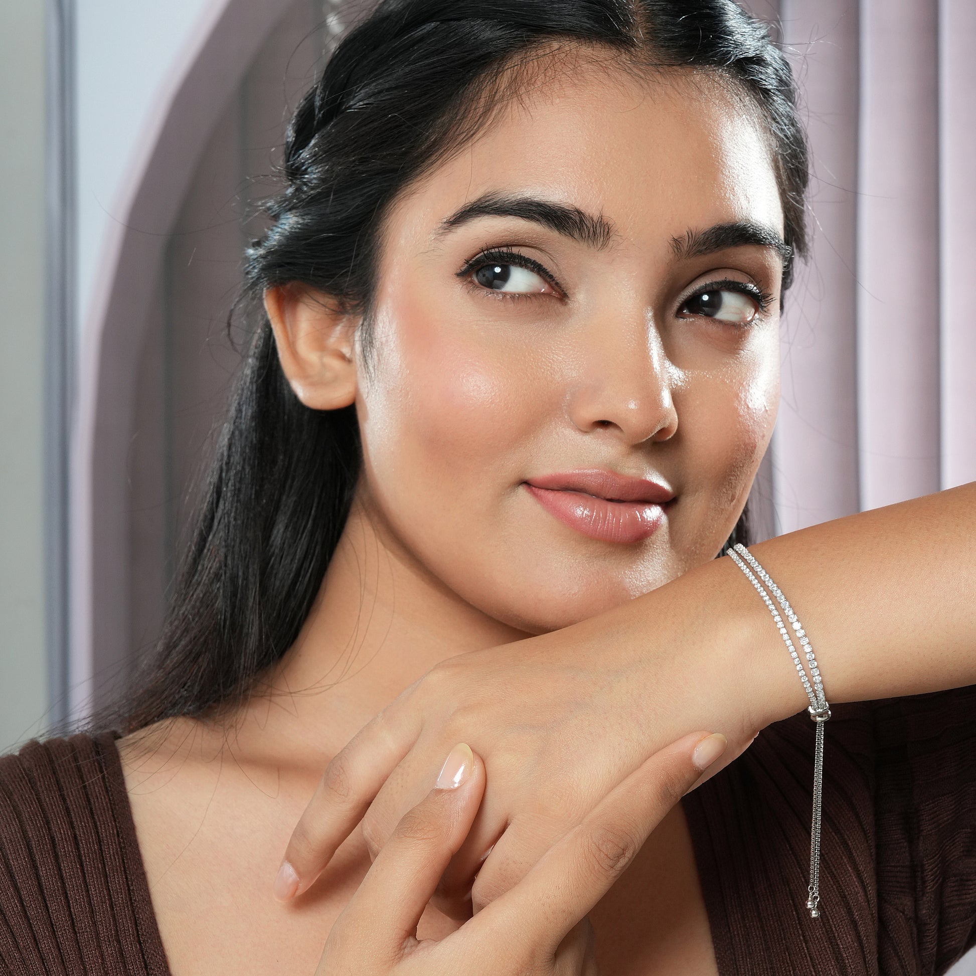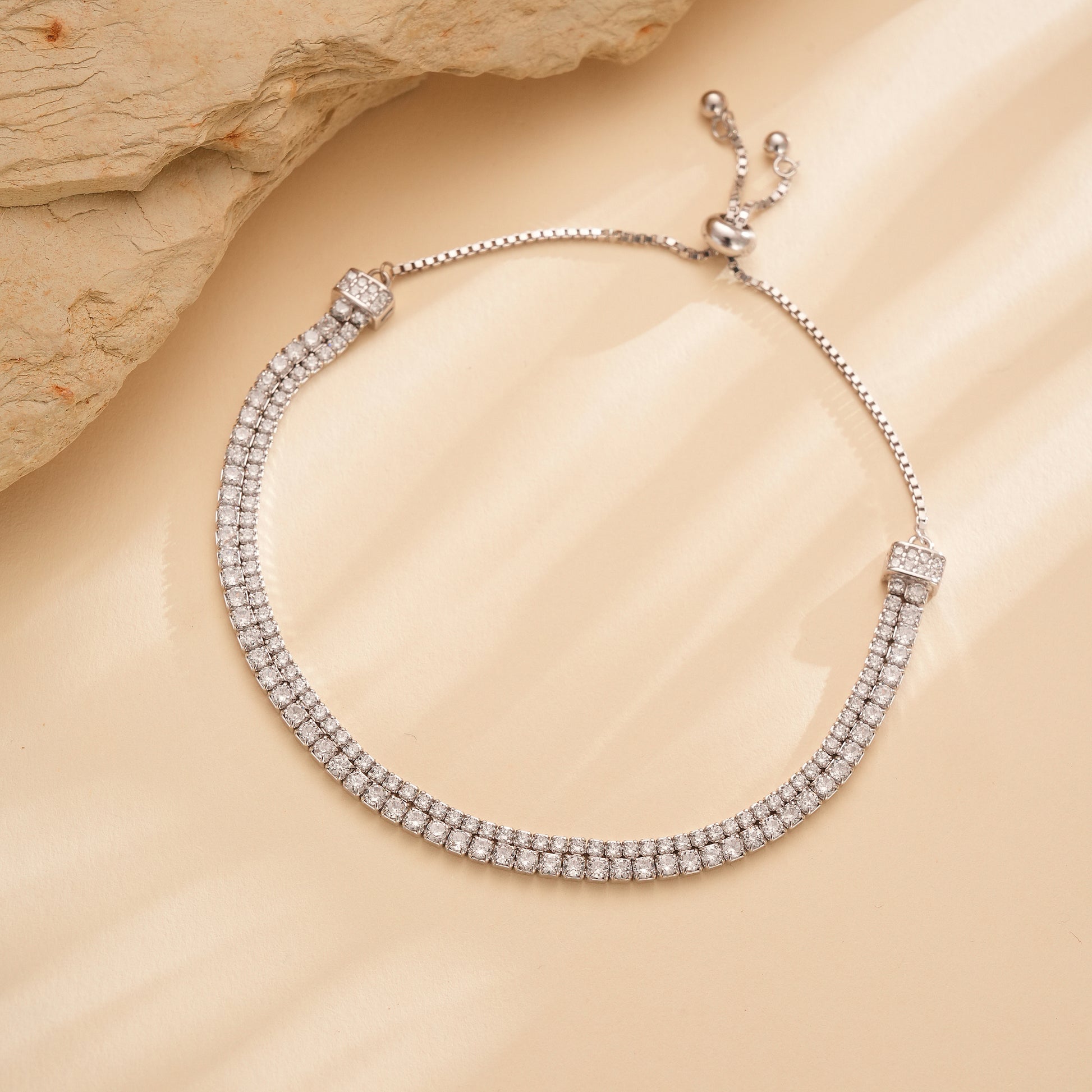 Grace meets glamour in this delicately designed 925 silver bracelet. With dual rows of CZ brilliance on sterling silver, it’s the kind of piece that makes you feel radiant every time you slip it on. Sleek with an adjustable design, it would add glam to your party outfits, dinners, luncheons and office outfits.
